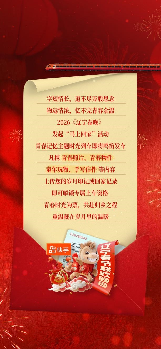 2026年春运的第一天,亿万行囊已装满思念,启程奔赴一个叫做家的地方。此时此刻,2026《辽宁春晚》精心筹备的马上回家号列车也同时出发,诚邀每一位归心似箭的游子,带上时光的记忆与我们同行