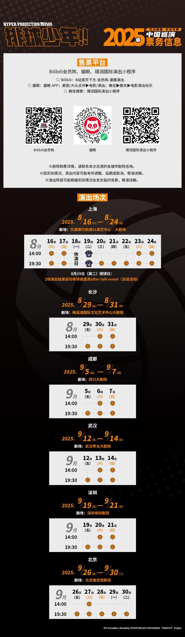 作为集英社旗下超高人气IP的舞台化作品,《排球少年!!》舞台剧凭借其对原作情节的高度还原、精湛的表演制作以及强烈的现场感染力,在日本及海外多站演出中屡获好评。本次中国巡演版本由一批演技与舞蹈实力兼备的青年演员倾情出演,