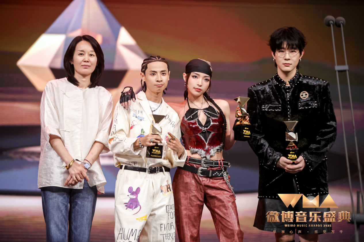 9月25日,万众瞩目的2025微博音乐盛典现场在京隆重举行,华语乐坛顶尖音乐人齐聚一堂。种梦音乐D.M.G艺人GAI周延、VaVa娃娃、布瑞吉Bridge、早安亮相盛典现场,潮流穿搭吸睛无数,四人共斩获四项大奖。