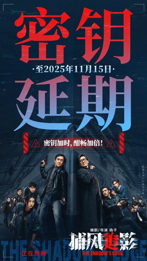 动作犯罪电影《捕风追影》宣布第二次密钥延期,将延长上映至2025年11月15日。影片上映55天累计票房12.54亿,暂居年度票房第六名。