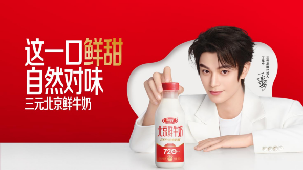 丁禹兮凭借在多部热门影视作品中的表现,积累了广泛的国民认知度,其个人形象中“清爽、真诚、亲和、努力”的标签,与三元北京鲜牛奶“100%自有奶源”所代表的真诚品质,以及“T+0模式”所诠释的鲜活属性高度契合。在品牌TVC中,他以真实用户的视角诠释“喝的就是一个鲜”,将产品主张转化为年轻人熟悉的“分享式”表达,既延续了三元的品质基因,也消弭了传统乳业品牌与年轻群体之间的沟通隔阂。