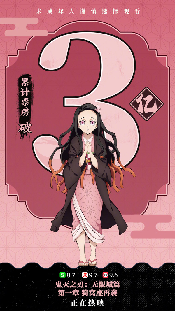 单片方面,《鬼灭之刃:无限城篇 第一章 猗窝座再袭》首周末3天票房收3.72亿元,创造日片在中国内地最高首周末3天票房纪录,也创造今年进口片最高首周末票房,成为仅次于本土日本和北美的全球第三大票仓。该片豆瓣评分目前降至8.7分。