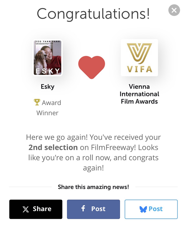 《ESKY》作为王冠逸执导的首部短片,承载着他个人真挚的情感与回忆。影片灵感来源于他与自己饲养的小猫Esky之间的真实点滴,他将这份对宠物深沉的爱与怀念,转化为镜头语言,讲述了一个关于陪伴、忠诚与无条件付出的动人故事。本片特邀金马影后杨雁雁出演,围绕女主人Yann与她喂养的狗狗Esky之间的日常展开,全片风格内敛平实,仅有寥寥几句台词,却透过细腻的画面,捕捉传递出人与动物之间那份纯粹而深刻的情感纽带。影片中流淌的真挚情感,不仅打动着观众,更赢得了国际评委的青睐。