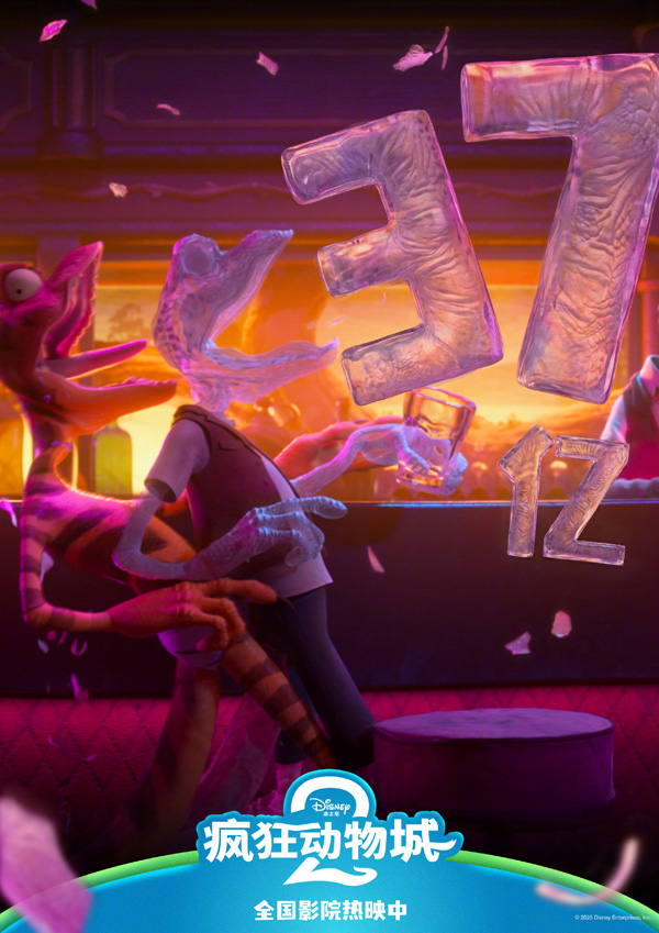 2.《疯狂动物城2》9588万,上映25天累计37.44亿;