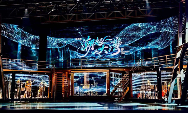 《潮起大湾》以1999年澳门回归至今的时代浪潮为叙事背景,通过澳门、横琴、深圳等空间转换,讲述了疍家少女麦斯钰与青梅竹马的黄梓健等普通人,在大湾区发展进程中奋斗成长、融合共生的动人故事。全剧以麦斯钰从“以舟为家、以海为田”的传统疍家生活走向现代城市文明的转型为主线,串联起老船厂改造等核心情节,塑造了土生葡人、海外精英、本土企业家、新一代青年等多元人物群像,生动展现了不同文化背景者在湾区相遇碰撞、协作共赢的过程,深刻诠释了“岸是启航之地”的精神内核。剧中巧妙融入疍家咸水歌、葡萄牙法多音乐等多元旋律,舞台视觉则将古老船厂、渔网帆影与现代都市光影无缝融合,实现了传统文化与现代艺术的创新性表达。