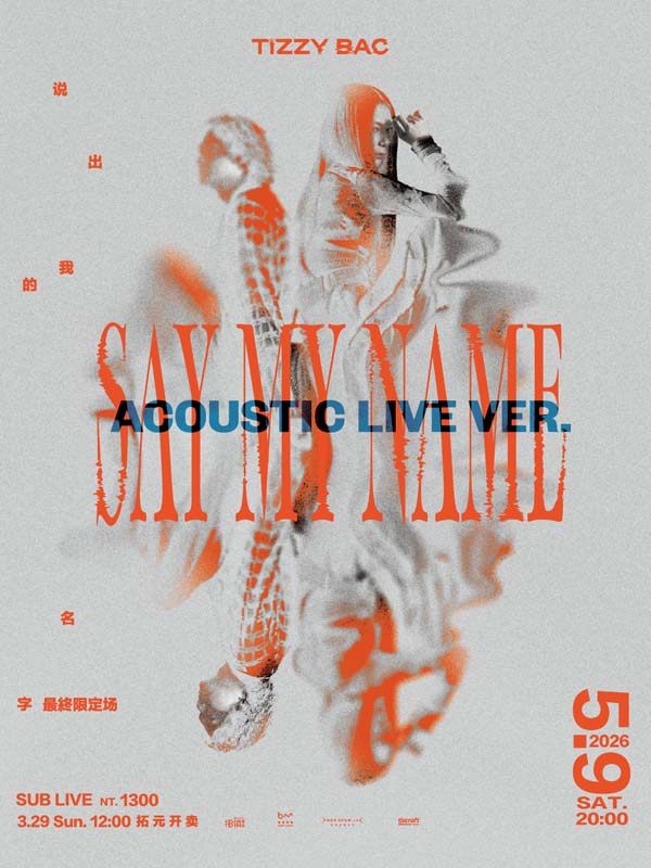 Tizzy Bac宣布加码推出《说出我的名字》最终限定场「ACOUSTIC LIVE」,将于5月9日(六)晚间8点在SUB LIVE开唱,门票预计于3月29日(日)中午12点于拓元售票系统正式开卖。Tizzy Bac坦言,这场演出让他们压力爆棚,形容宛如挑战自己“素颜”上台!